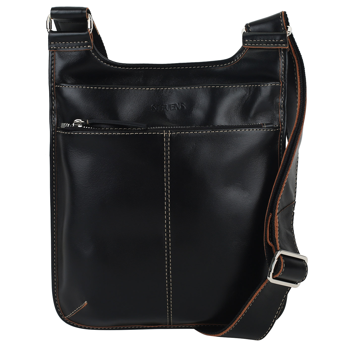 Кожаная сумка через плечо Stevens AS15S/TX01_pc - 2000558519687 черный натуральная кожа 23 x 28 x 3 Цена 10780 руб. купить в интернет-магазине PanChemodan.ru в Санкт-Петербурге