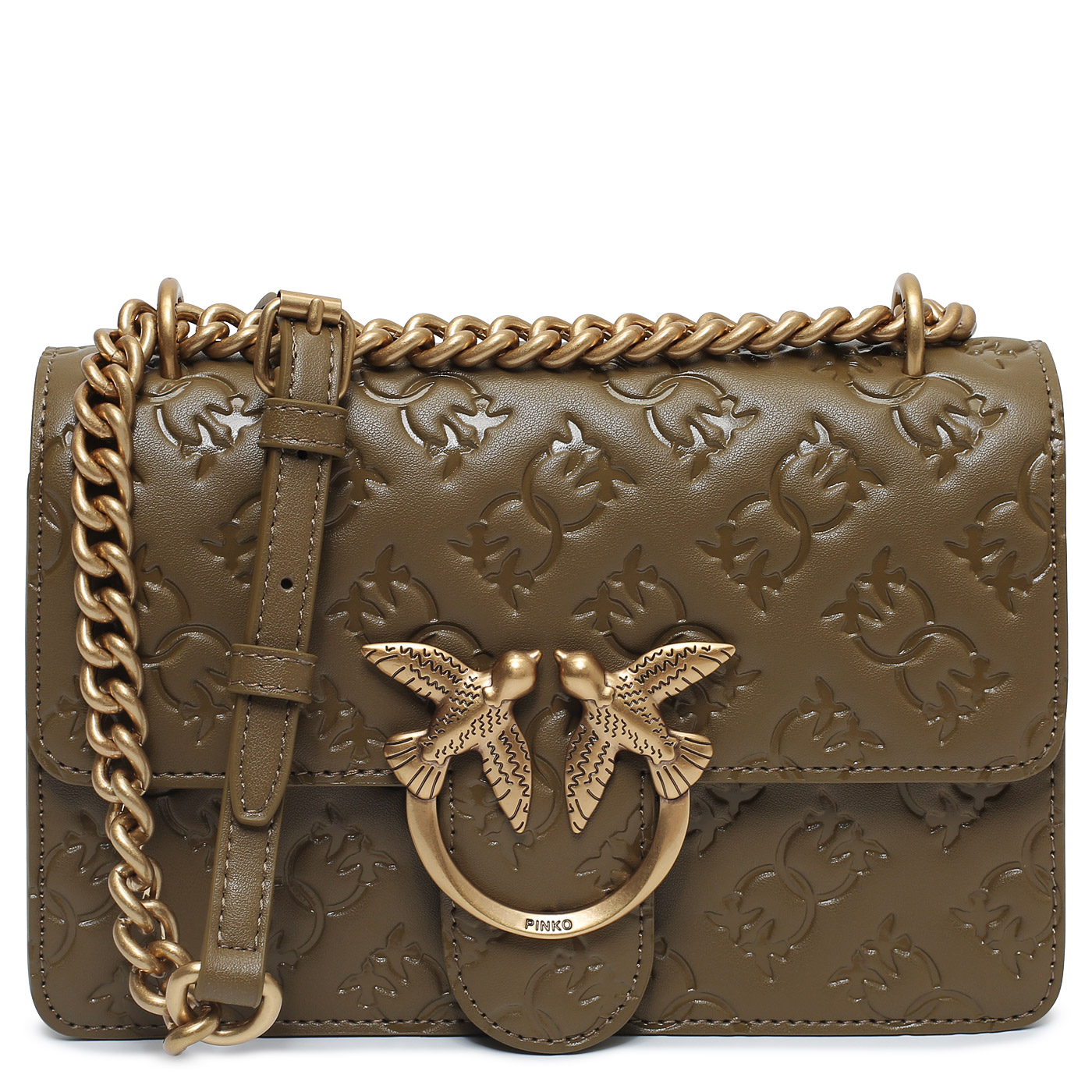 Сумка через плечо с цепочкой Pinko Love One 100074-A1YB/V68Q_piantagione - 2000558612333 оливковый натуральная кожа 21 x 13 x 6 Цена 29760 руб. купить в интернет-магазине PanChemodan.ru в Самаре