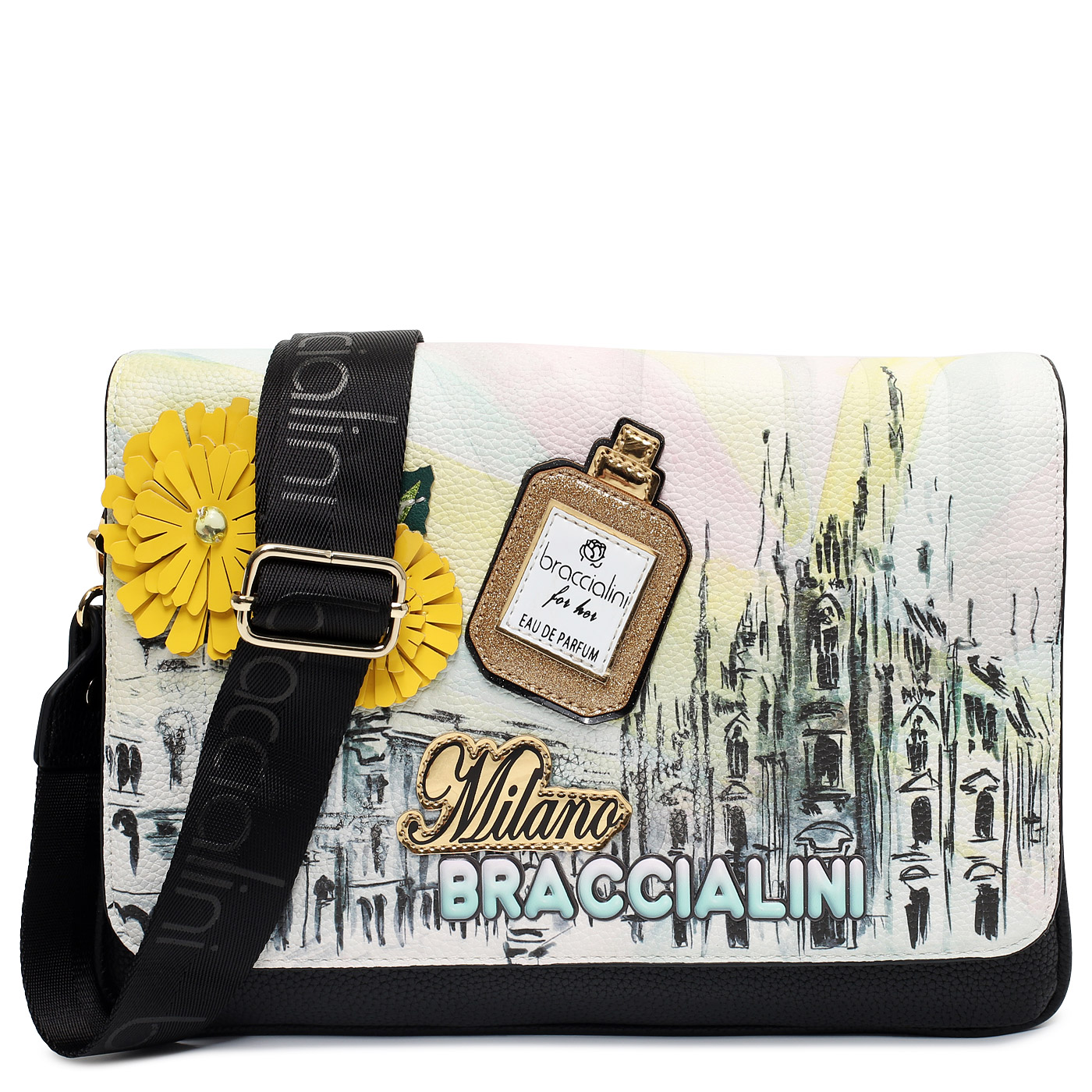 Сумка через плечо Braccialini Cartoline B17875-YY_unico_pc - 2000558716475 мульти полиэстер, полиуретан 28,5 x 19 x 7 Цена 20390 руб. купить в интернет-магазине PanChemodan.ru в Самаре