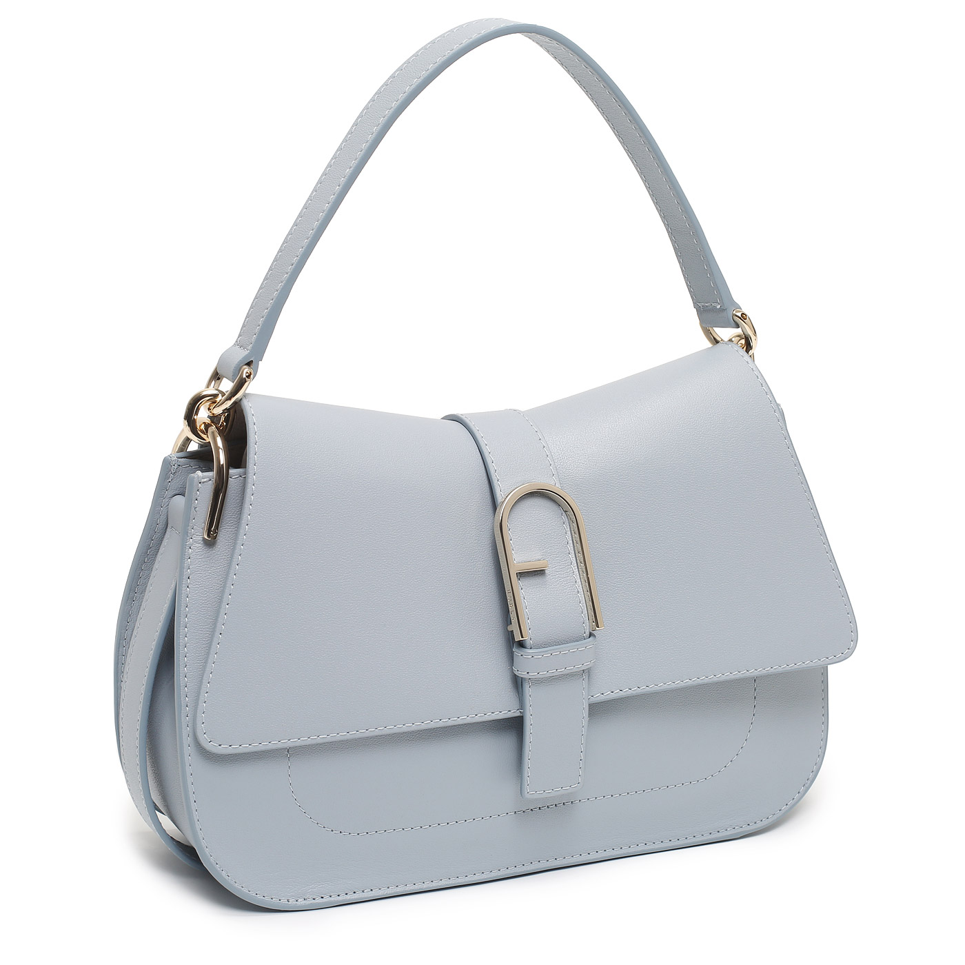 Кожаная сумка Furla Flow WB00996_nuvola - 2000558743594 голубой натуральная кожа 26,5 x 16,5 x 8,5 Цена 35700 руб. купить в интернет-магазине PanChemodan.ru в Самаре